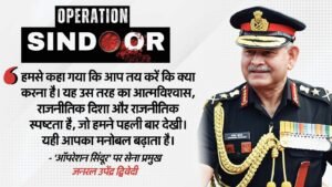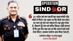 जनरल द्विवेदी ने कहा कि 25 तारीख को हमने उत्तरी कमान का दौरा किया, जहां हमने सोचा, योजना बनाई, रूपरेखा बनाई और ताबह किए गए नौ में से सात लक्ष्यों पर योजना को क्रियान्वित करने की तैयारी की। आपने देखा कि ऑपरेशन के दौरान बहुत सारे आतंकवादी ढेर किए गए। 29 अप्रैल को हम पहली बार प्रधानमंत्री नरेंद्र मोदी से मिले। यह अहम था कि कैसे एक छोटा-सा नाम ‘ऑपरेशन सिंदूर’ पूरे देश को जोड़ता है। यह कुछ ऐसा है, जिसने पूरे देश को प्रेरित किया। यही कारण है कि पूरा देश कह रहा था कि आपने इसे क्यों रोक दिया? यह सवाल पूछा जा रहा था और इसका पर्याप्त उत्तर दिया गया है।